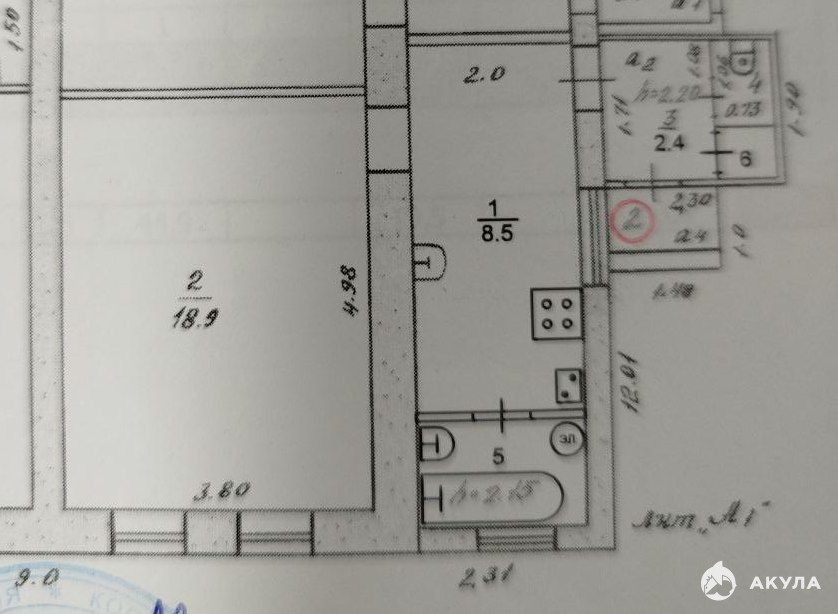 В квартире тамбур, прихожая, кухня 8, 5 м2 , большая комната 19 м2, раздельный санузел.