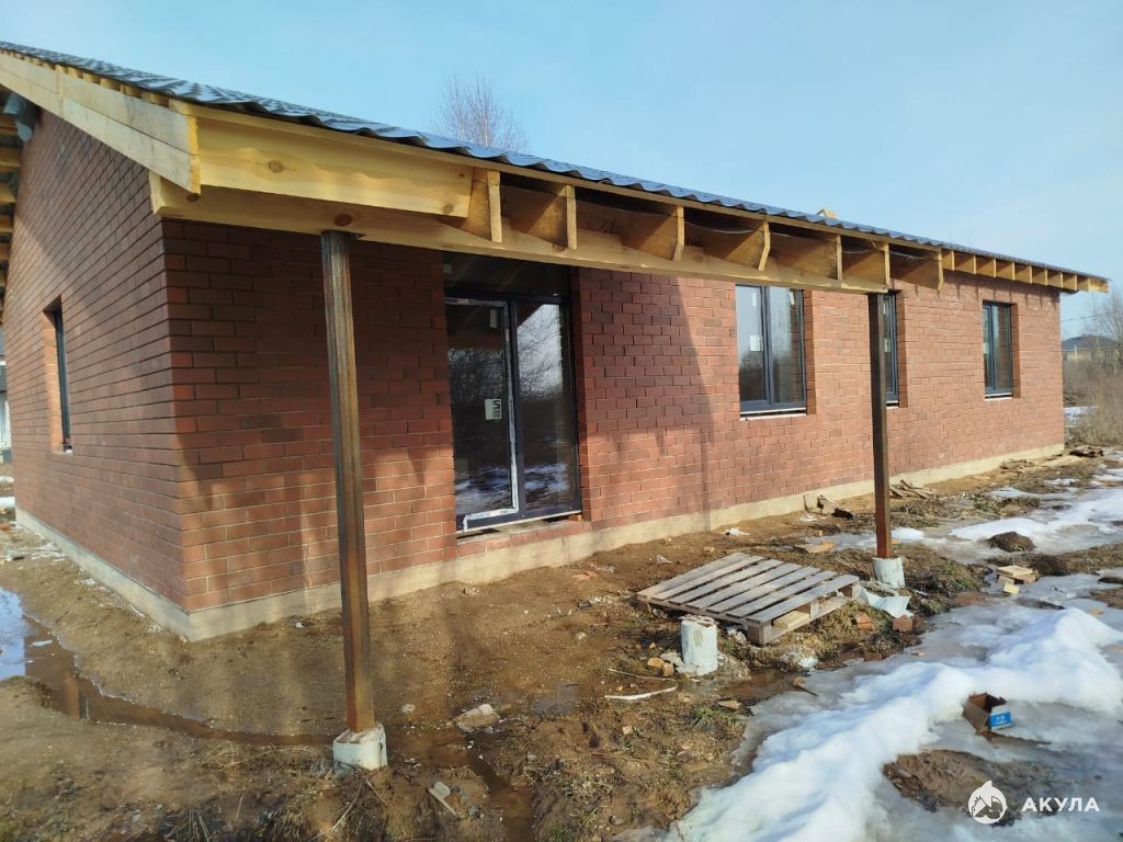 Стены: Газосиликат 400 мм с облицовкой керамическим кирпичом 120 мм.
