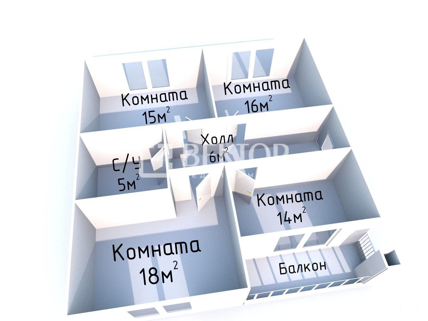 2й этаж: 4 спальни, из одной выход на балкон, санузел