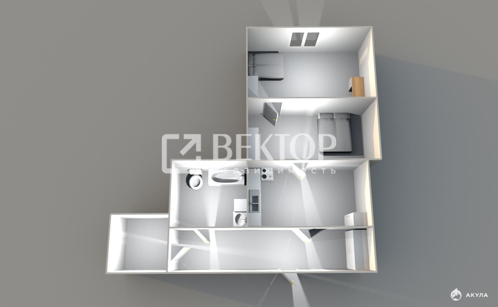 Частично остаётся мебель, включая большую двуспальную кровать и кухонный гарнитур, что значительно сэкономит ваши усилия на обустройство.