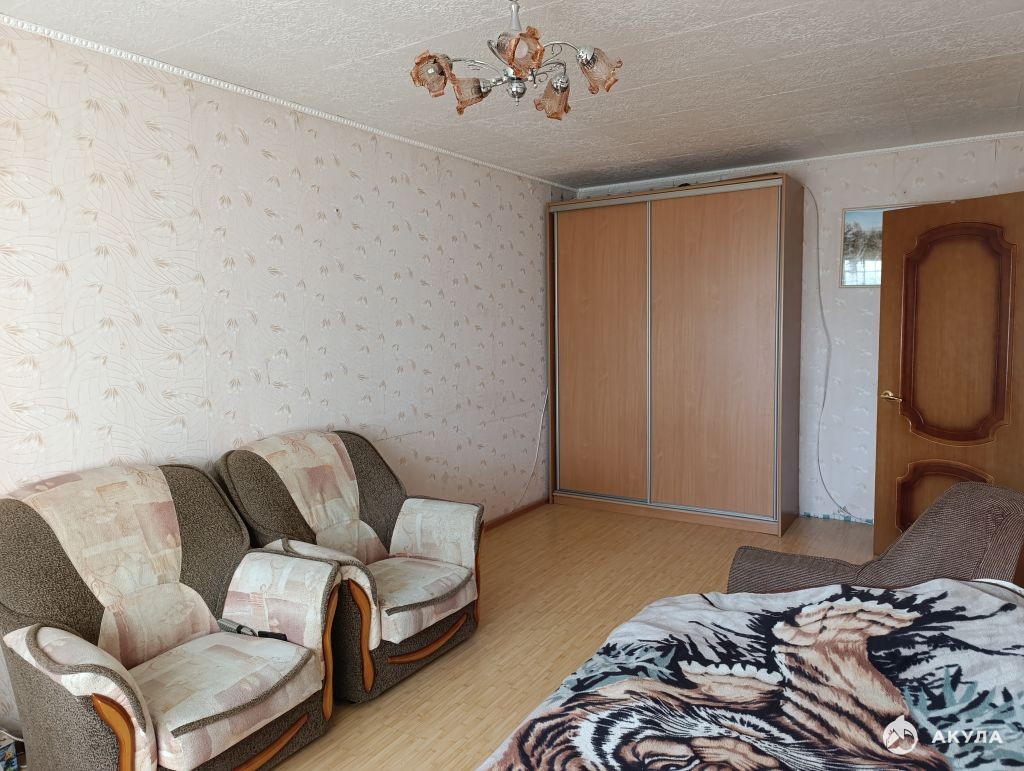 При продаже остается кухонный гарнитур, шкаф-купе в комнате.