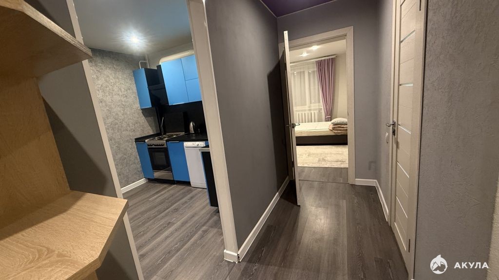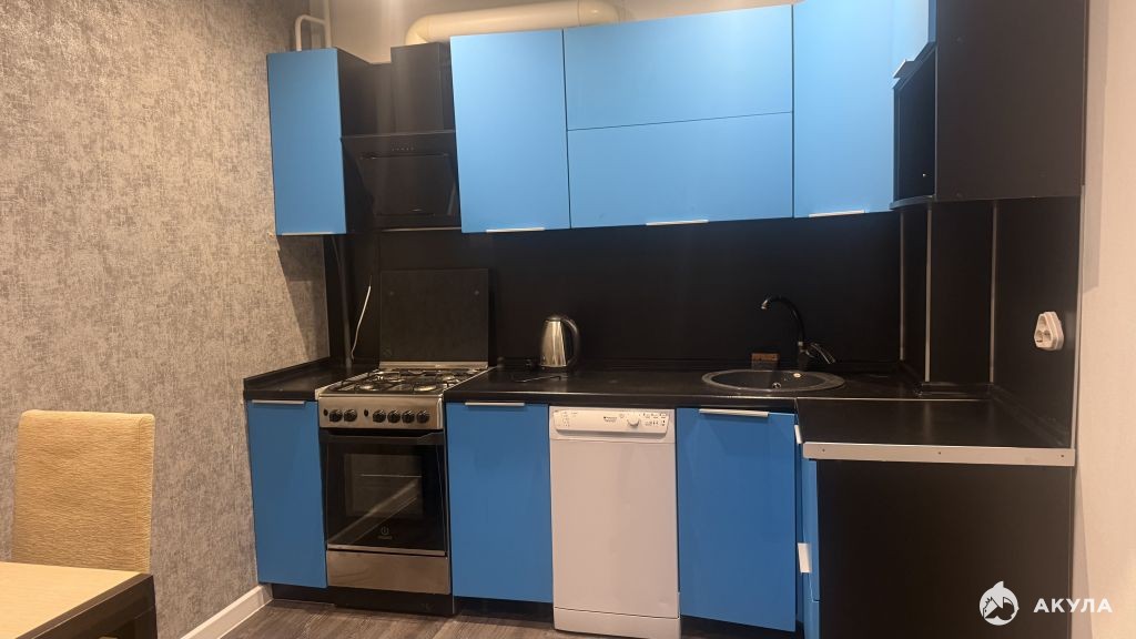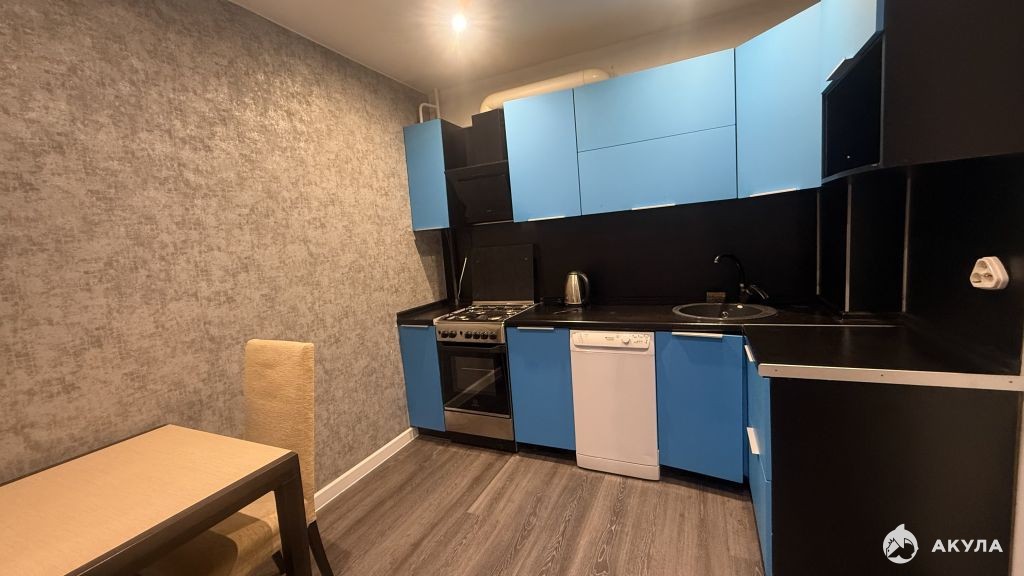 Общая площадь 39 кв.м. В квартире большая кухня (10 кв.м.) с выходом на застекленную лоджию и уютная комната (16 кв.м.). Качественный ремонт и вся необходимая мебель остаются: кухонный гарнитур, плита, посудомоечная машина, двухспальная кровать и прочее.