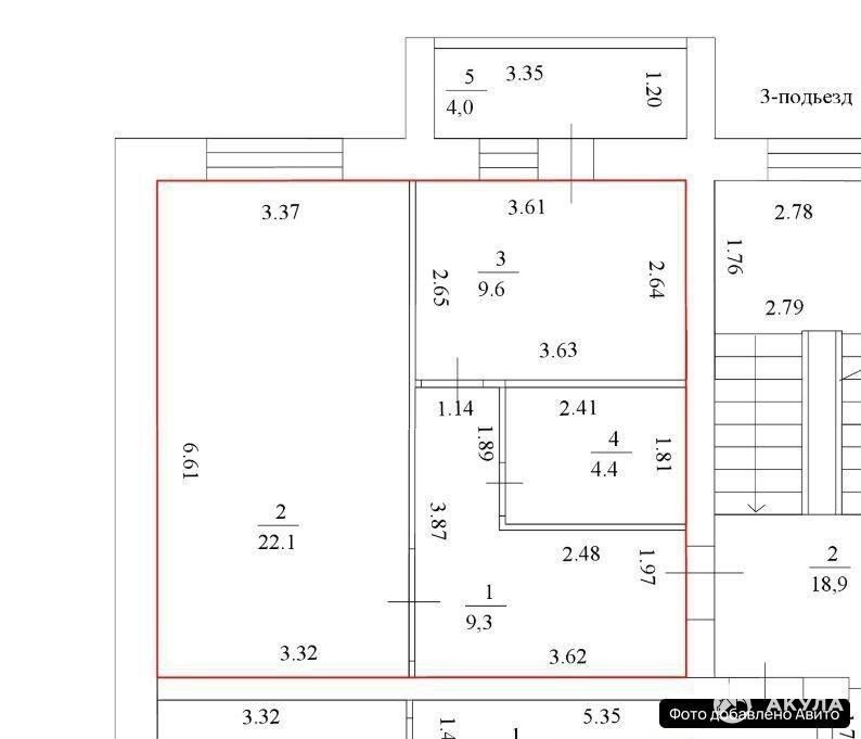 Квартира удобной планировки, большой коридор, из кухни выход на застекленную лоджию, большая комната прямоугольной формы, см.план.