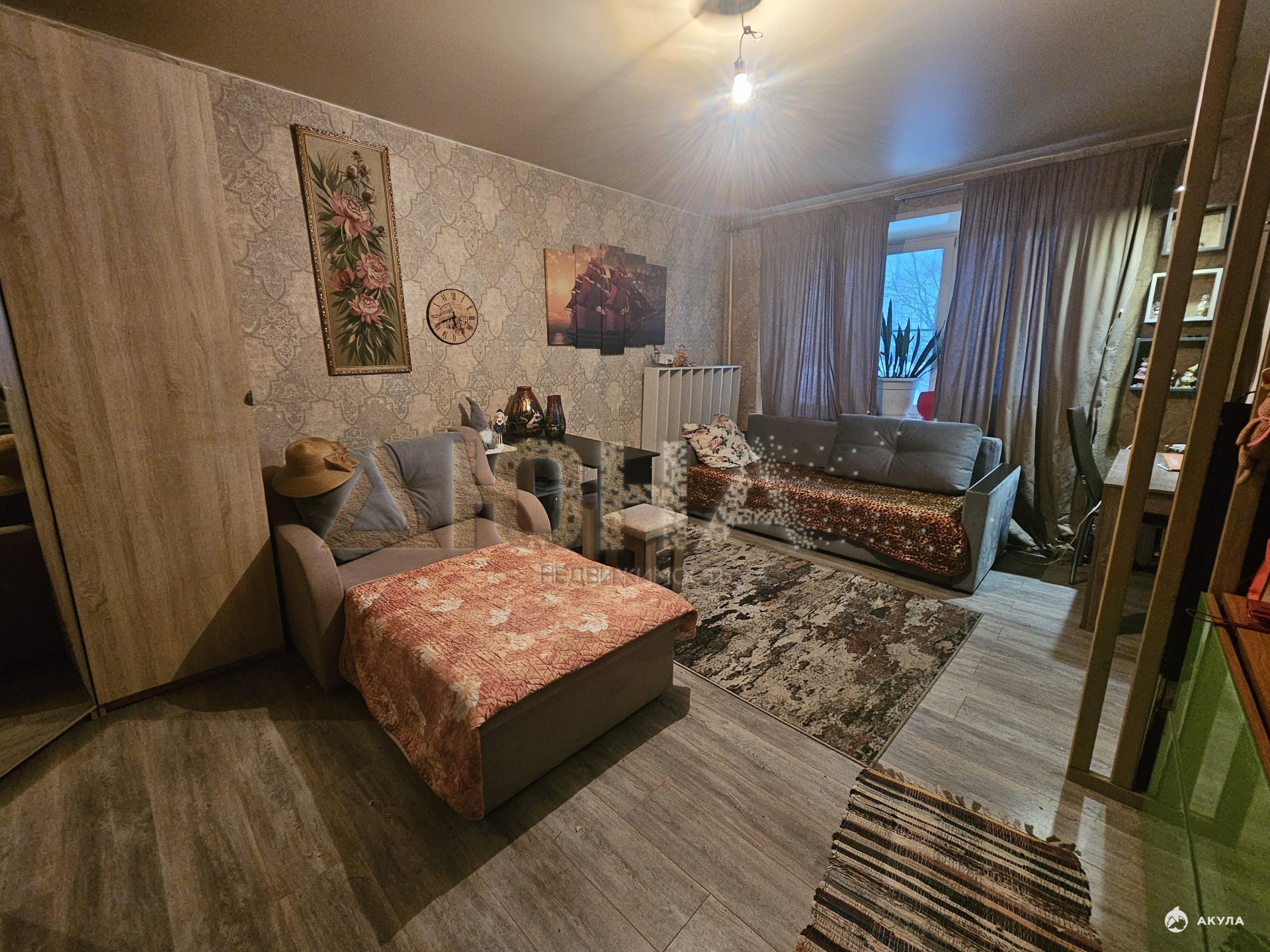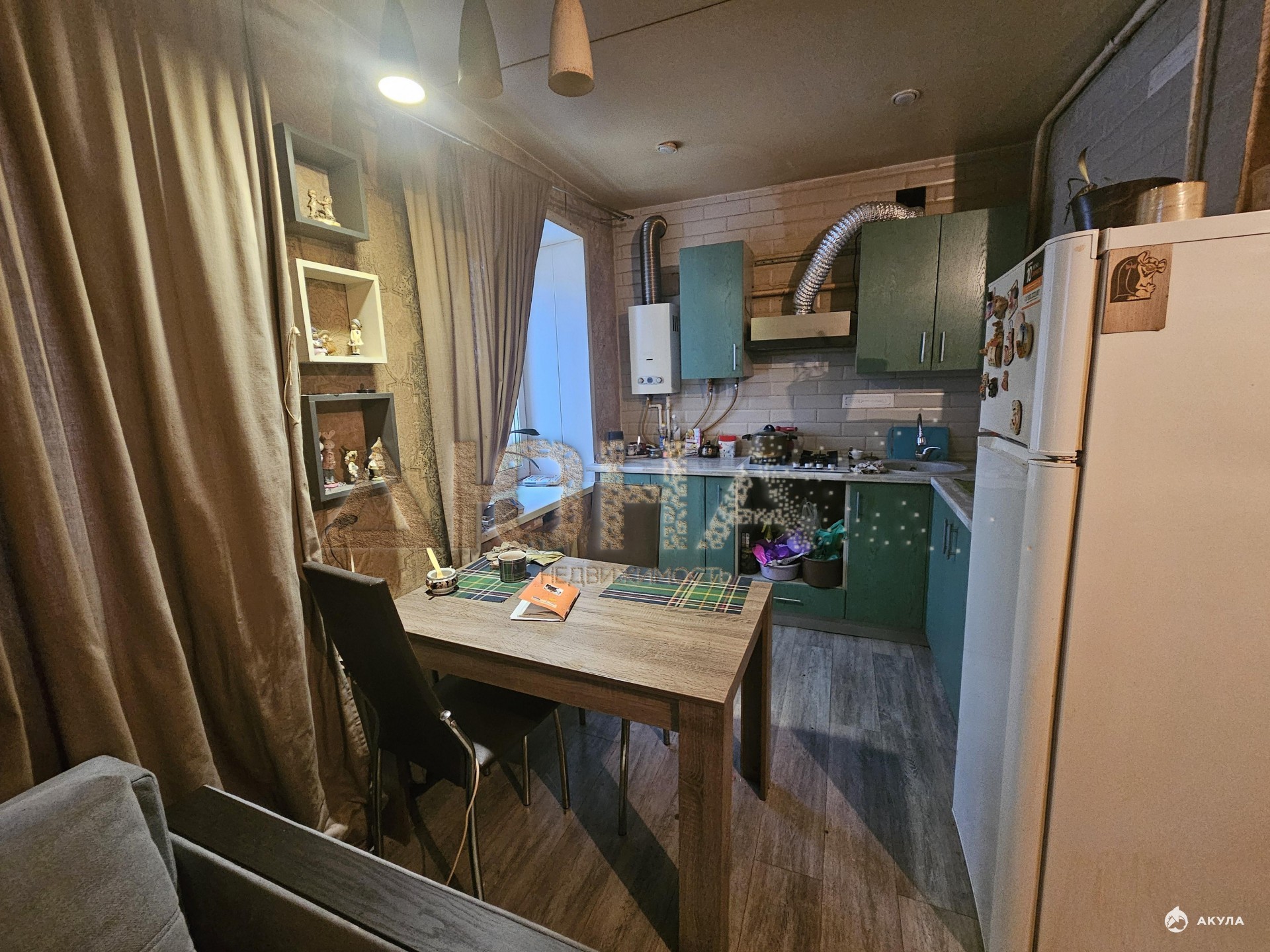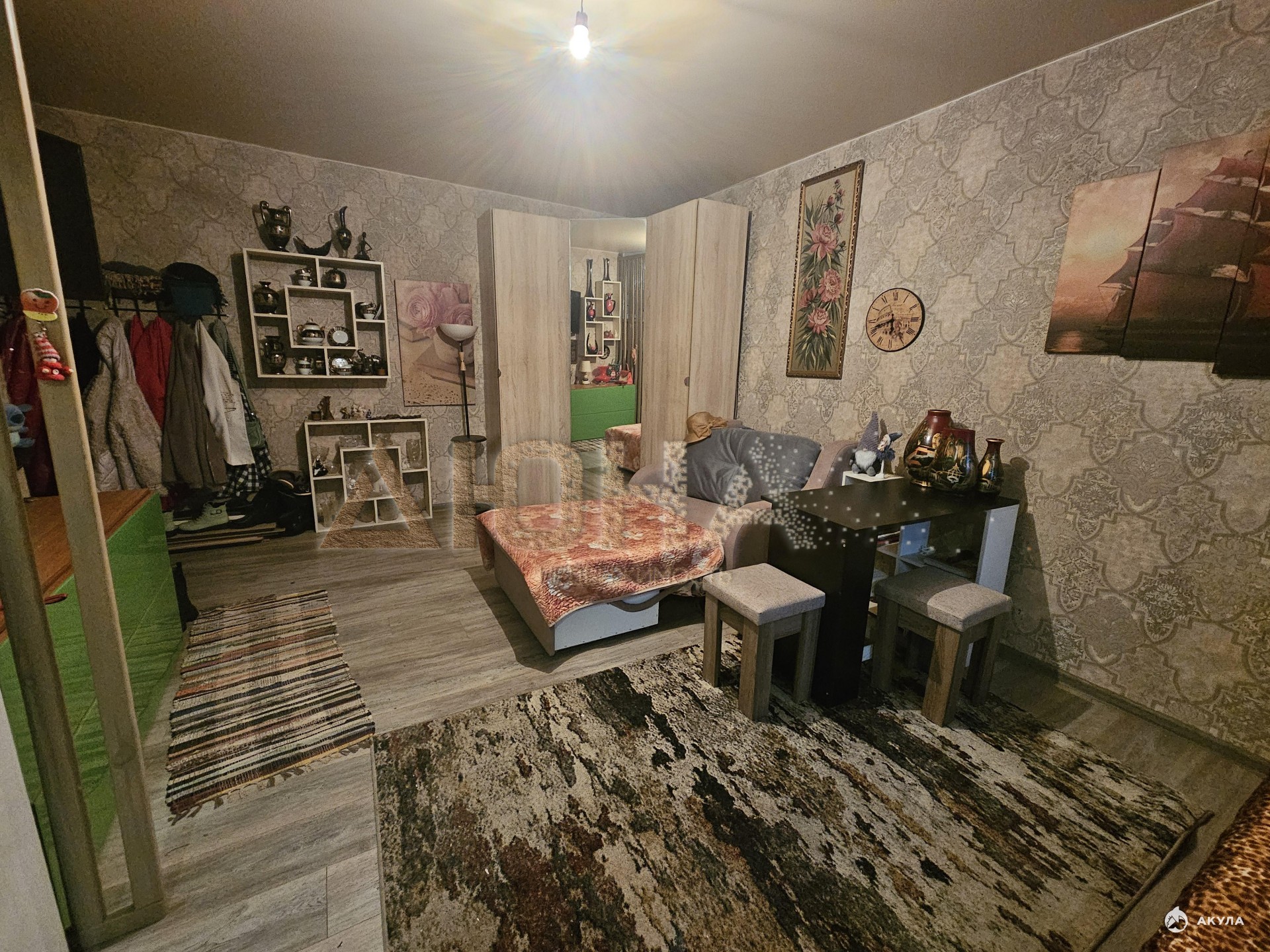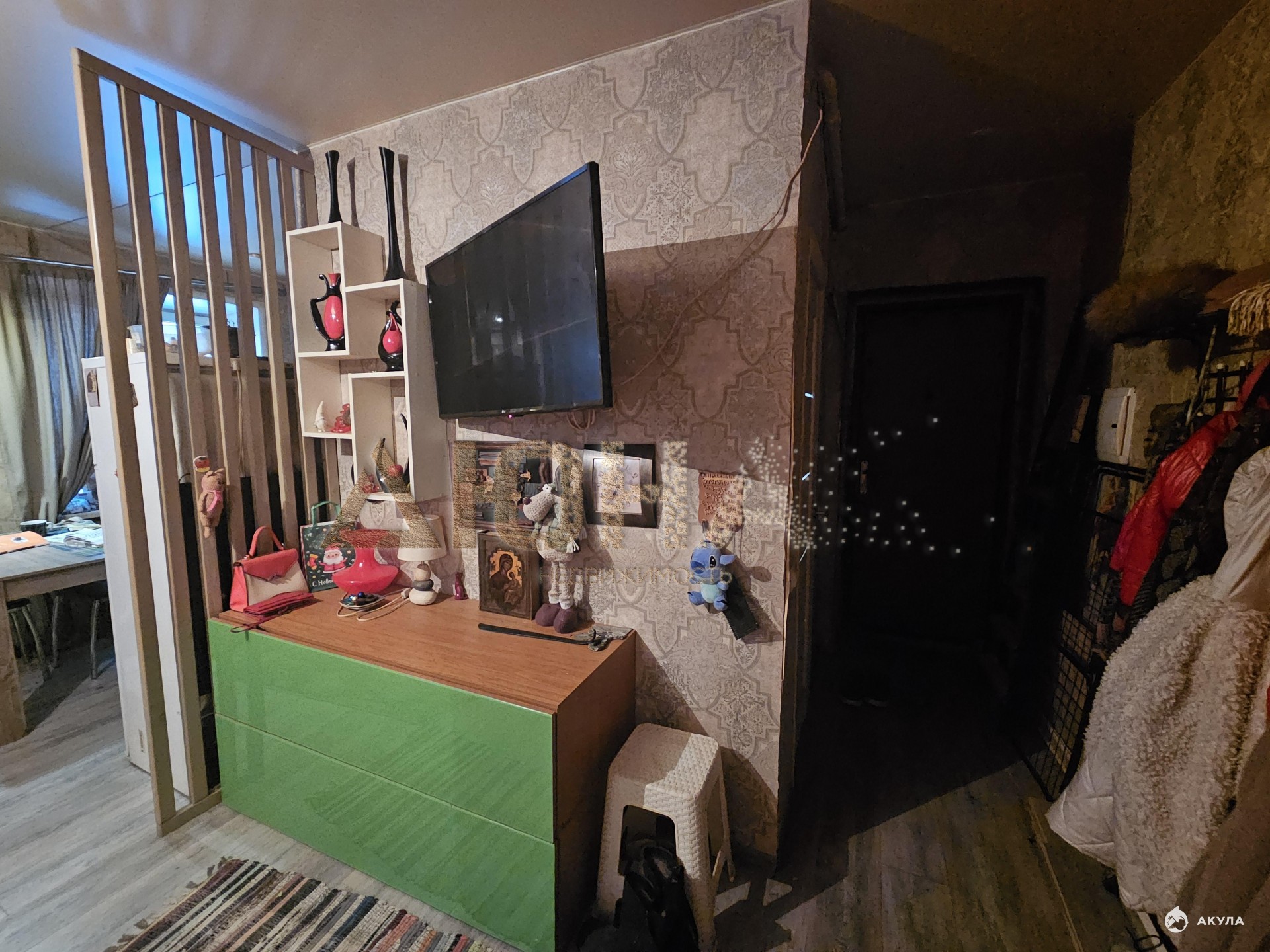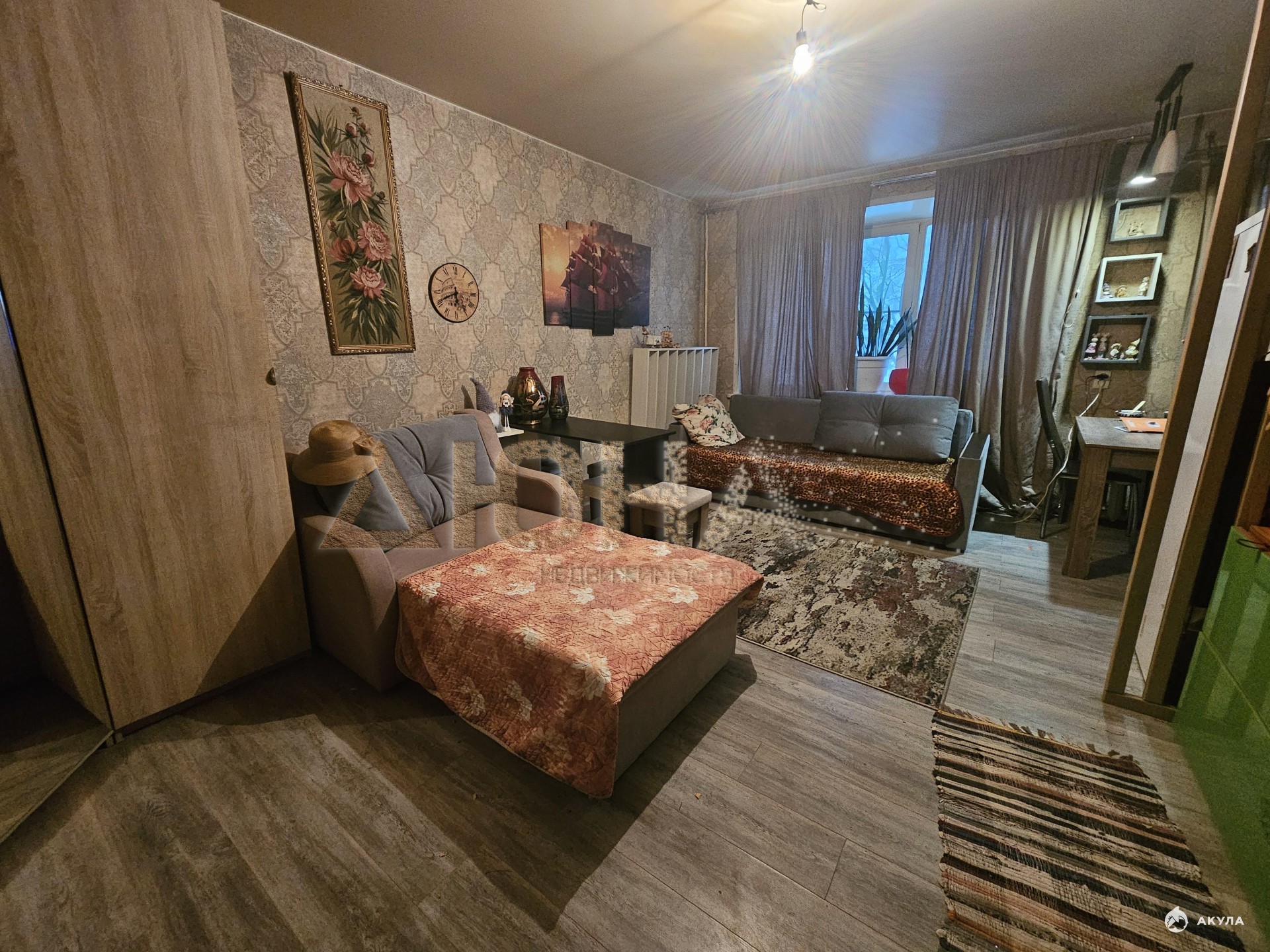 Сделан косметический ремонт в комнате и на кухне.