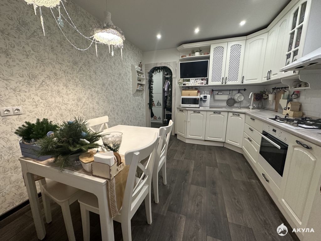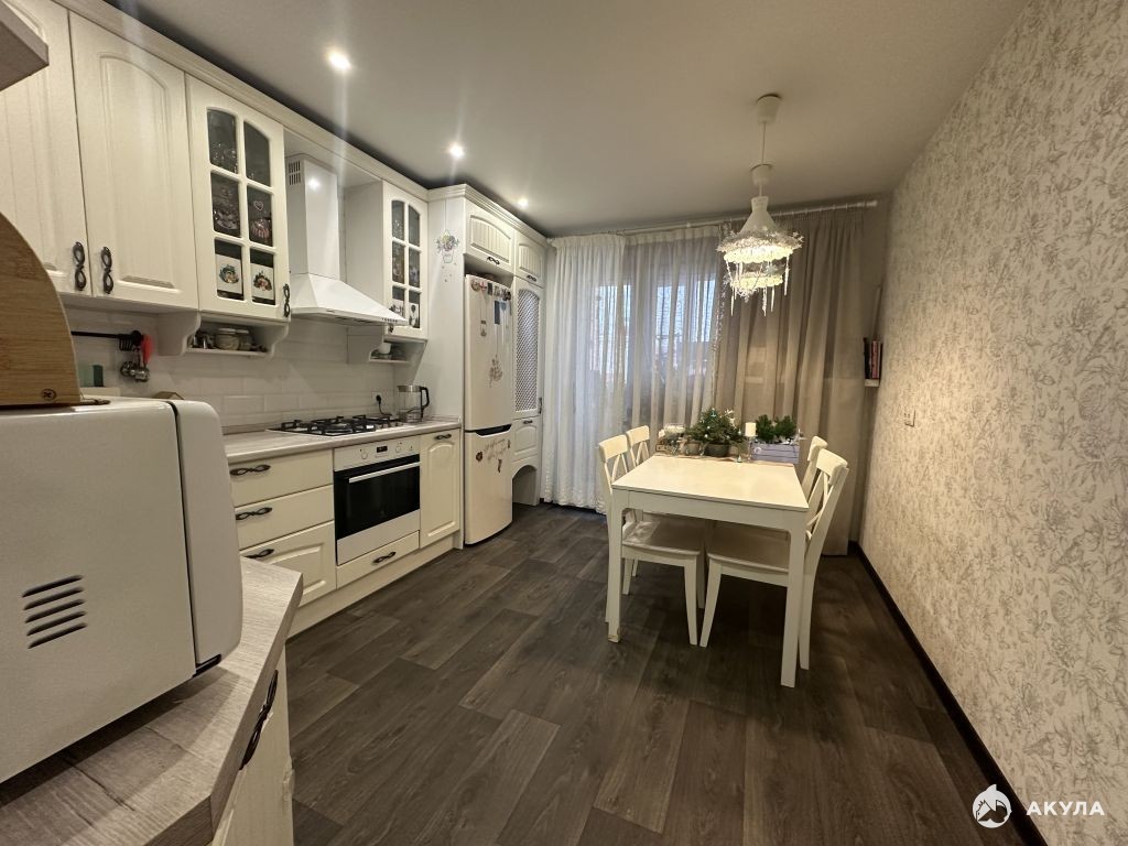 Просторная кухня площадью 13 м с выходом на утепленную лоджию. Кухня оборудована всей необходимой техникой и стильной мебелью. Комнаты изолированные, площадью 19, 5 кв.м., и 20, 5 кв.м., в зале предусмотрена вместительная гардеробная.