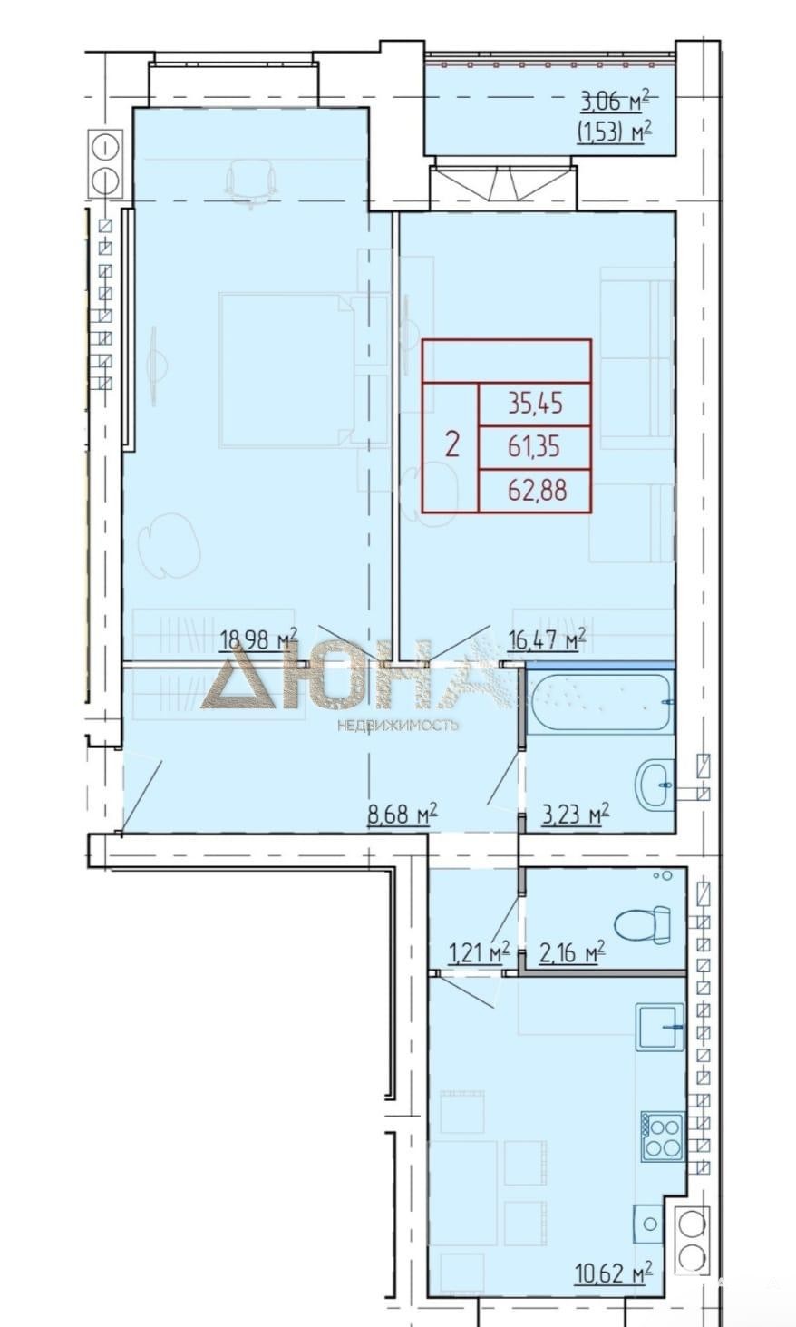 - 12.32 м²