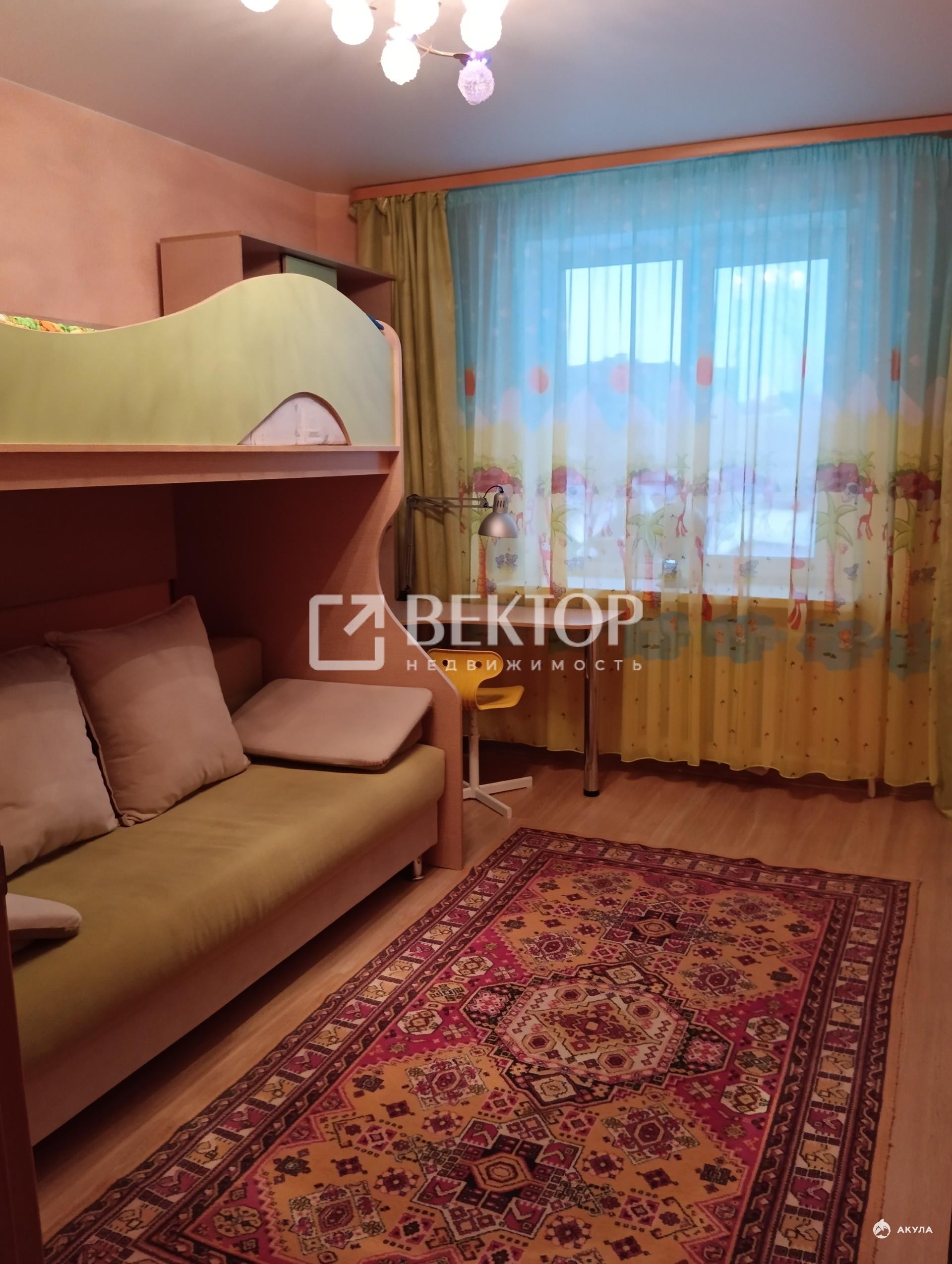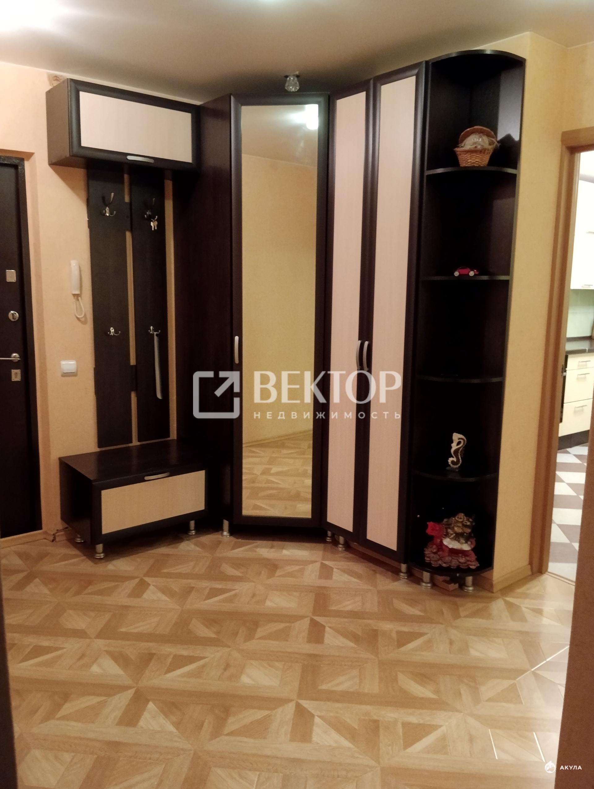 Просторная кухня площадью 15 кв. м., оснащена кухонным гарнитуром со встроенной бытовой техникой: плитой, духовым шкафом, вытяжкой и посудомоечной машиной. Установлена трёхступенчатая система очистки водопроводной воды. В прихожей есть функциональные места для хранения вещей, в большой комнате — вместительный шкаф-купе, а вторая комната обустроена как детская.