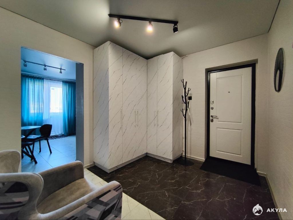 В квартире, новым собственникам, остаётся кухонный гарнитур, шкаф купе и диван в гостиной.