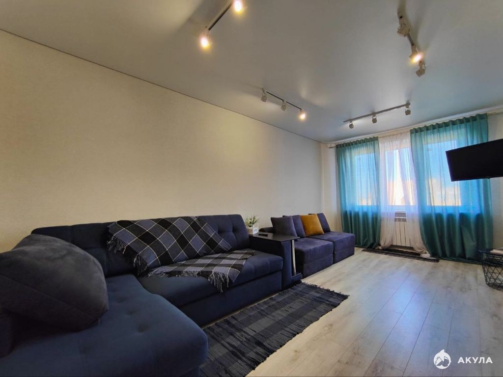 В квартире сделан качественный ремонт.Окна ПВХ, натяжной потолок, пол керамогранит, в спальне и гостиной ламинат.