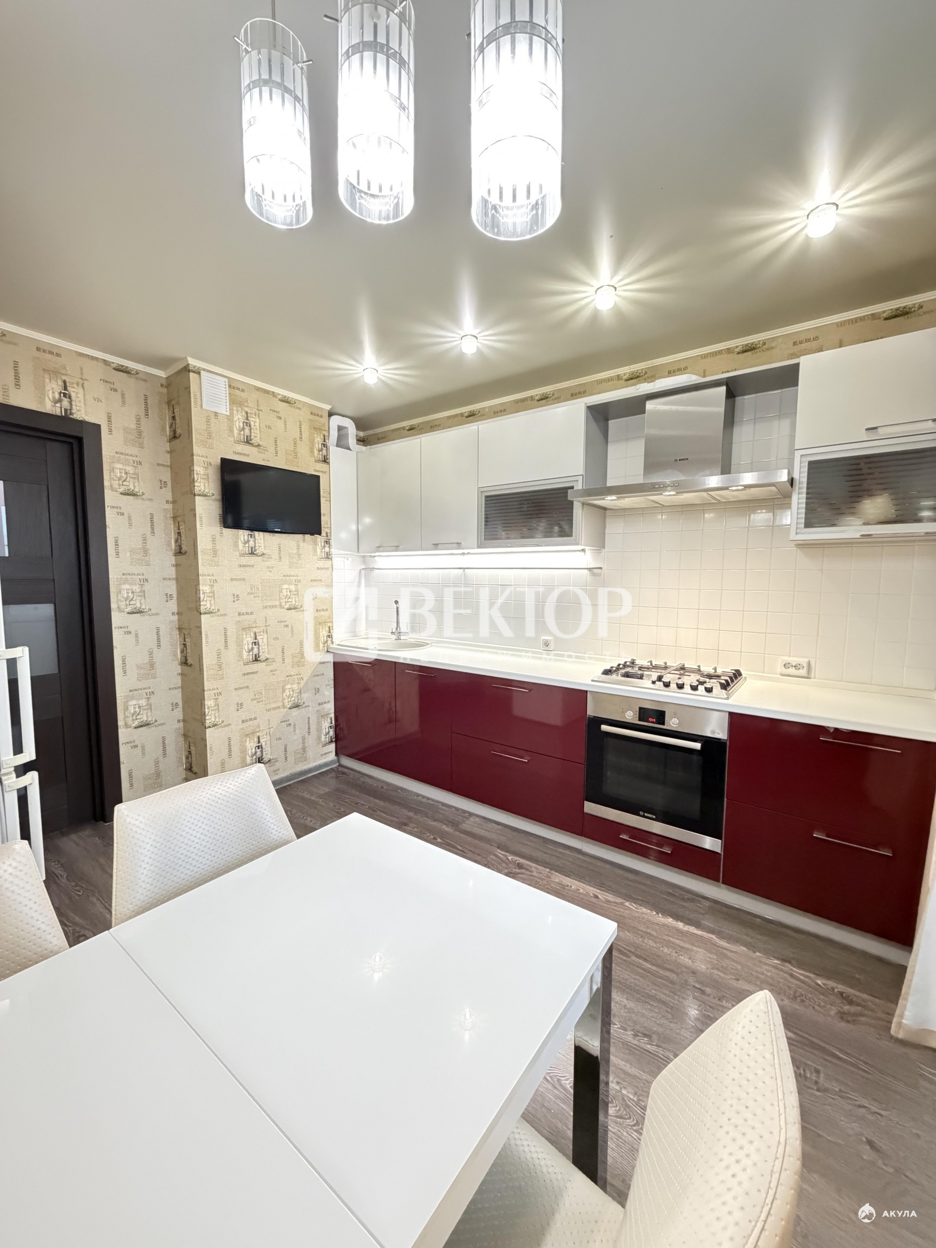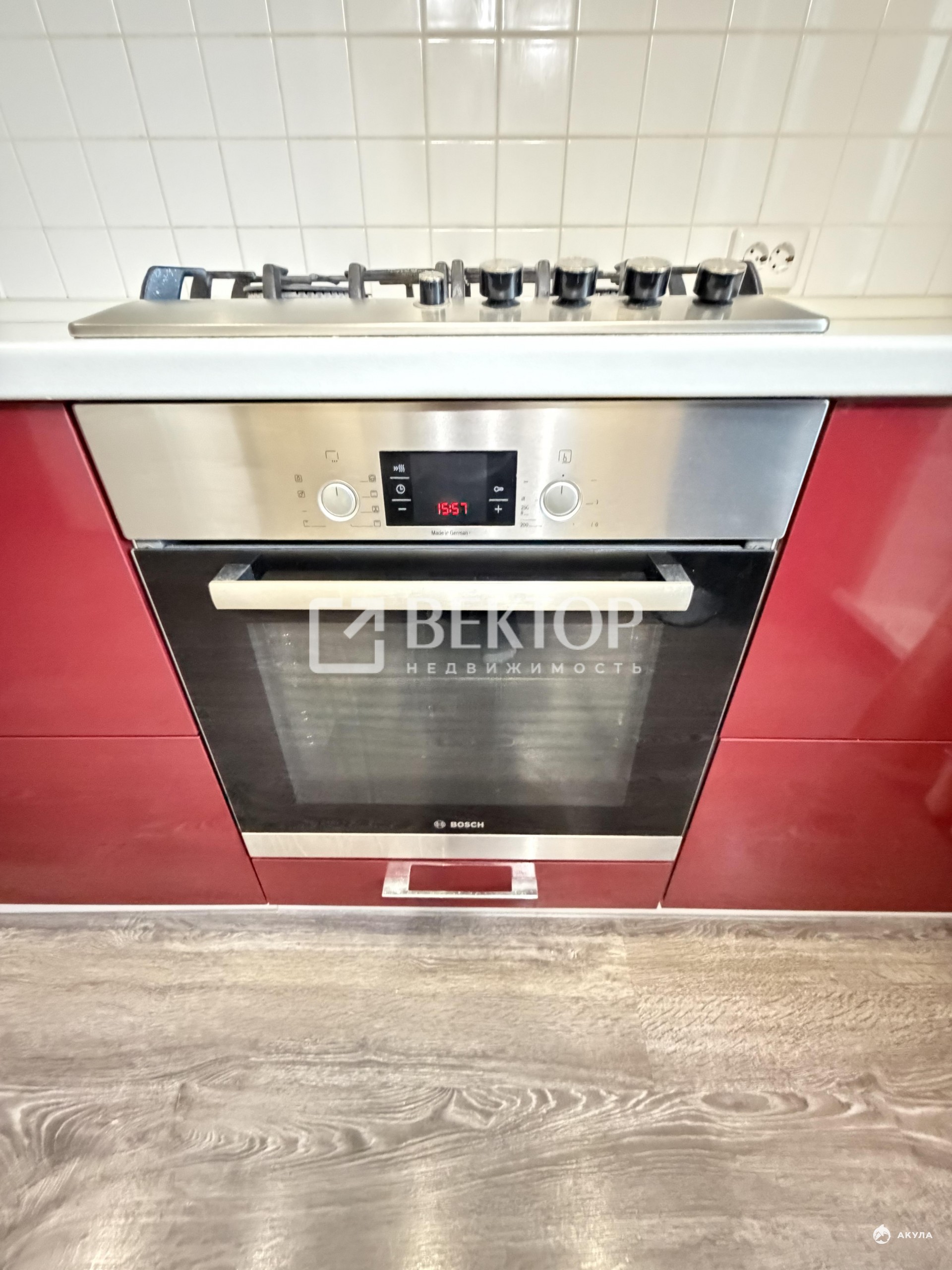 В подарок новым собственникам остается любимый кухонный гарнитур со всей встроенной техникой: варочная панель, духовой шкаф, вытяжка и посудомоечная машина все фирмы BOSCH-практично и долговечно.