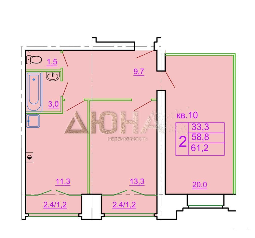 - Общая площадь 61.2 кв.м;