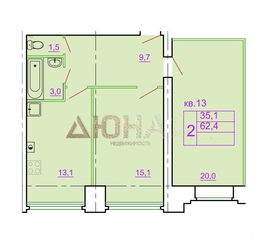 - 62 м²
