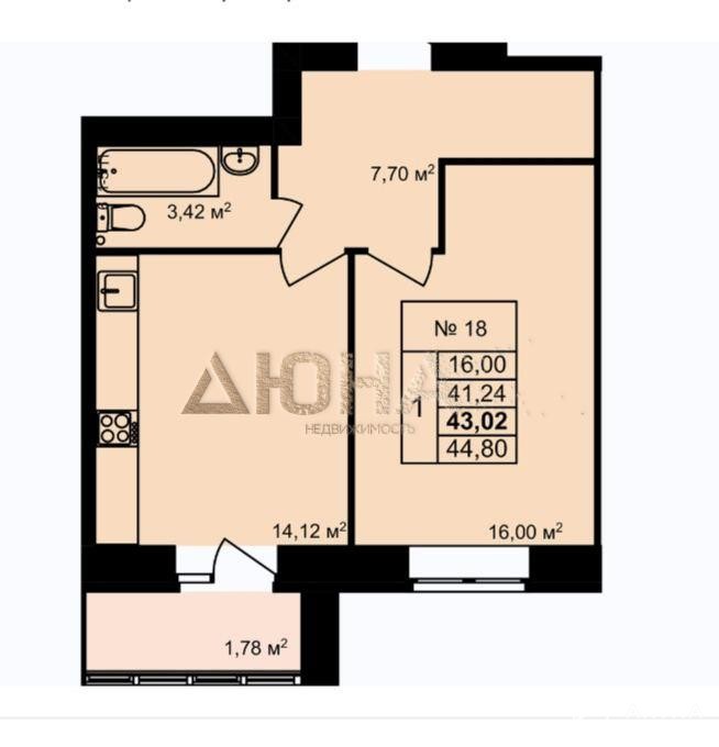 Эта квартира в кирпичном доме с надёжной и долговечной конструкцией расположена на первом этаже семиэтажного дома. Общая площадь квартиры составляет 43.02 м², жилая площадь — 16.00 м², площадь кухни — 14.2 м². В доме установлены пластиковые окна, смонтированы все необходимые инженерные системы: отопления, газоснабжения, водоснабжения, водоотведения и электроснабжения с установкой приборов учёта. В каждую квартиру заведены домофон, телефон и интернет.
