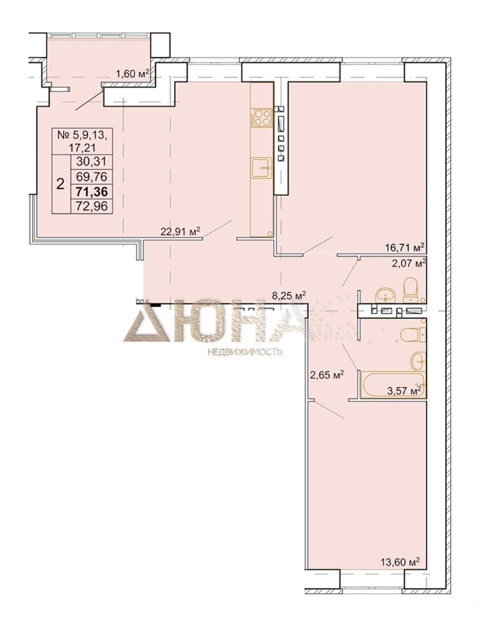 - 22.91 м²