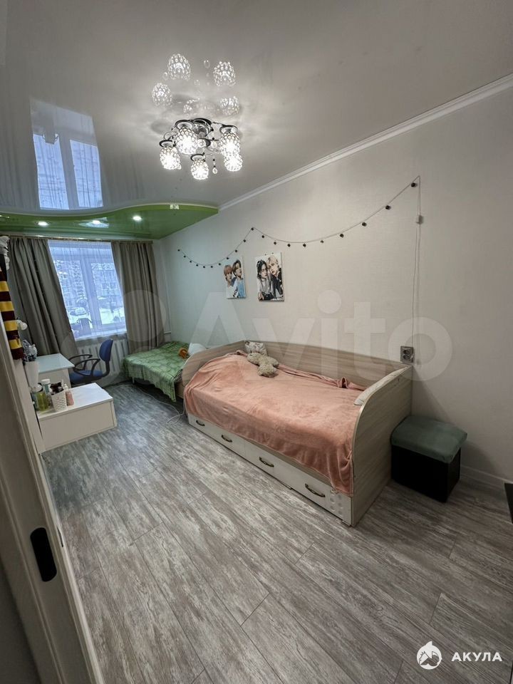 На полу уложен качественный ламинат, стены отделаны декоративной штукатуркой, обоями. В комнате установлены современные светильники, создающие атмосферу уюта.