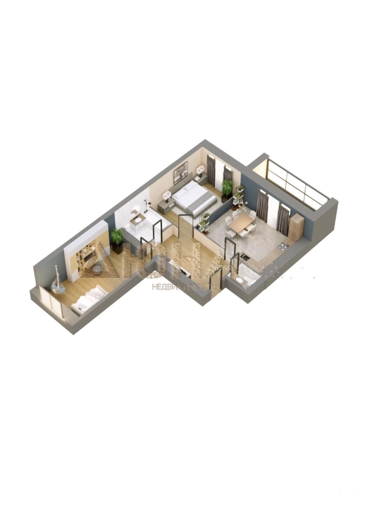 В продаже двухкомнатная квартира с АОГВ. Планировка на разные стороны.