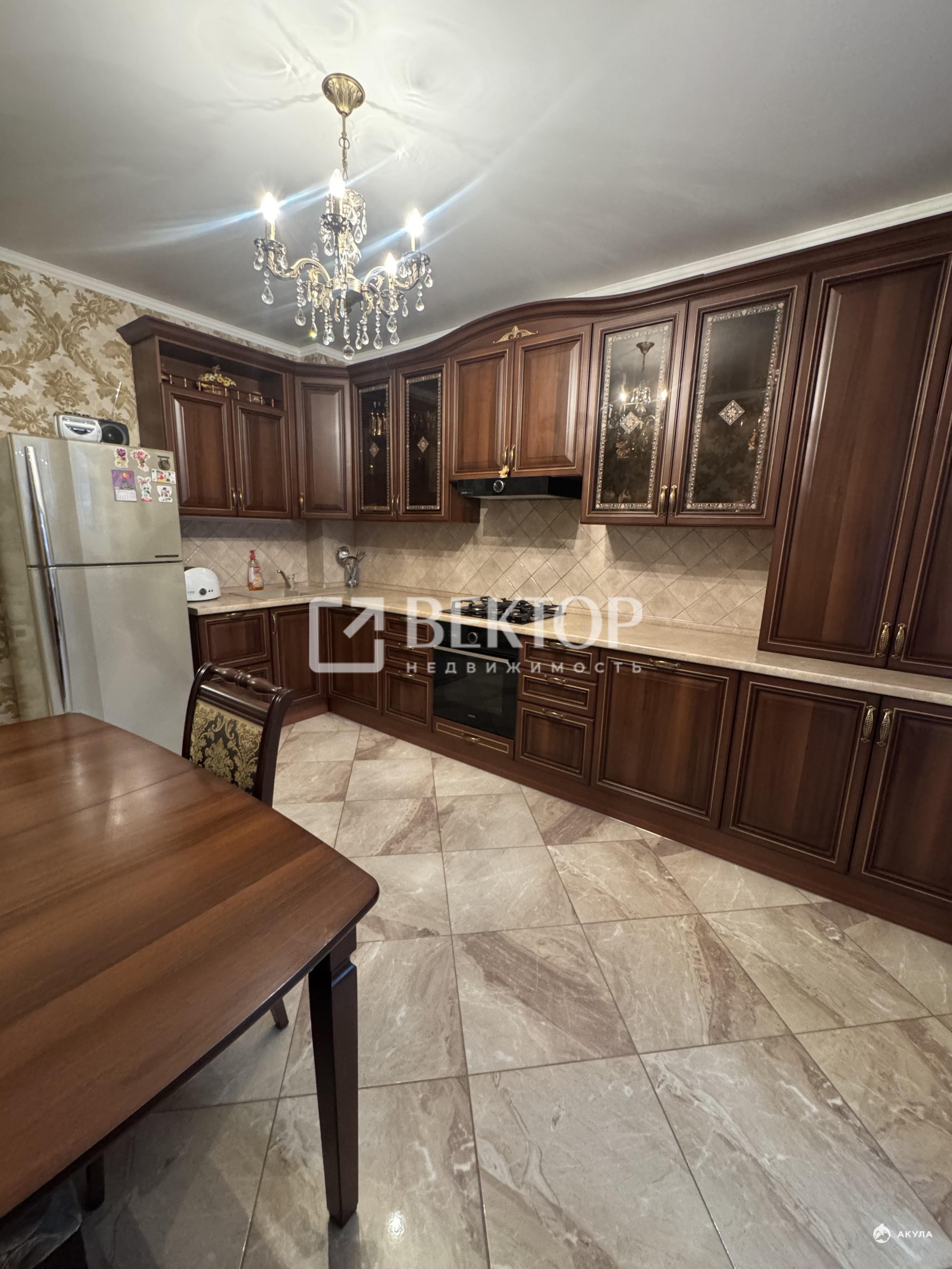 Кухня большая - 15 м кв., оборудована современной техникой.