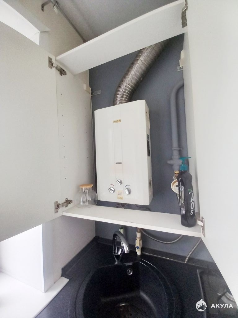 В коридоре и кухне залиты полы и уложена плитка, установлен хороший кухонный гарнитур, газовая колонка - всегда есть горячая вода. В кухне новая проводка, выровнены стены, трубы воды и канализации также заменены, пластиковые.