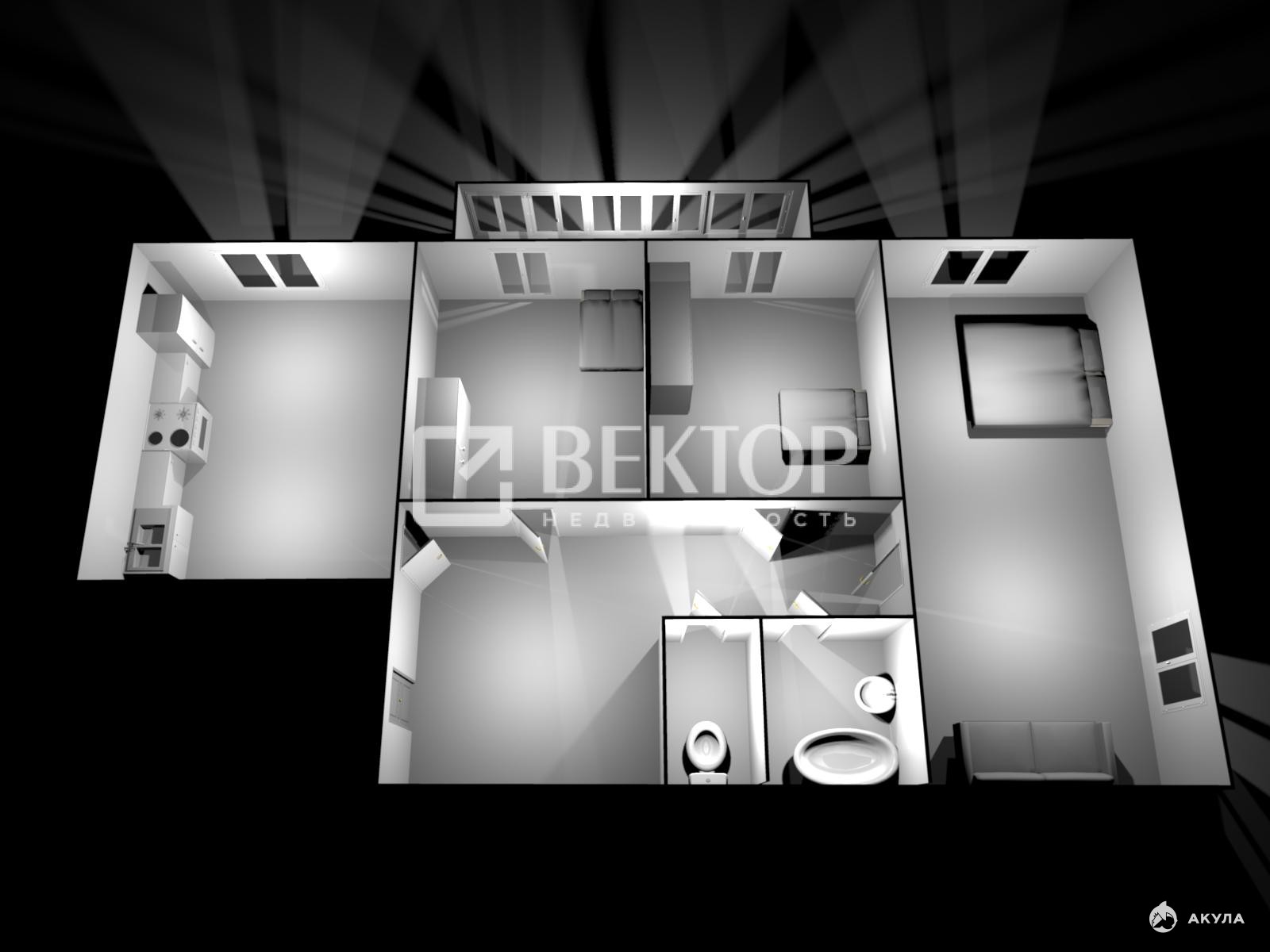 Площадь комнат - 12.3 м² / 11.1 м² / 22 м² ;