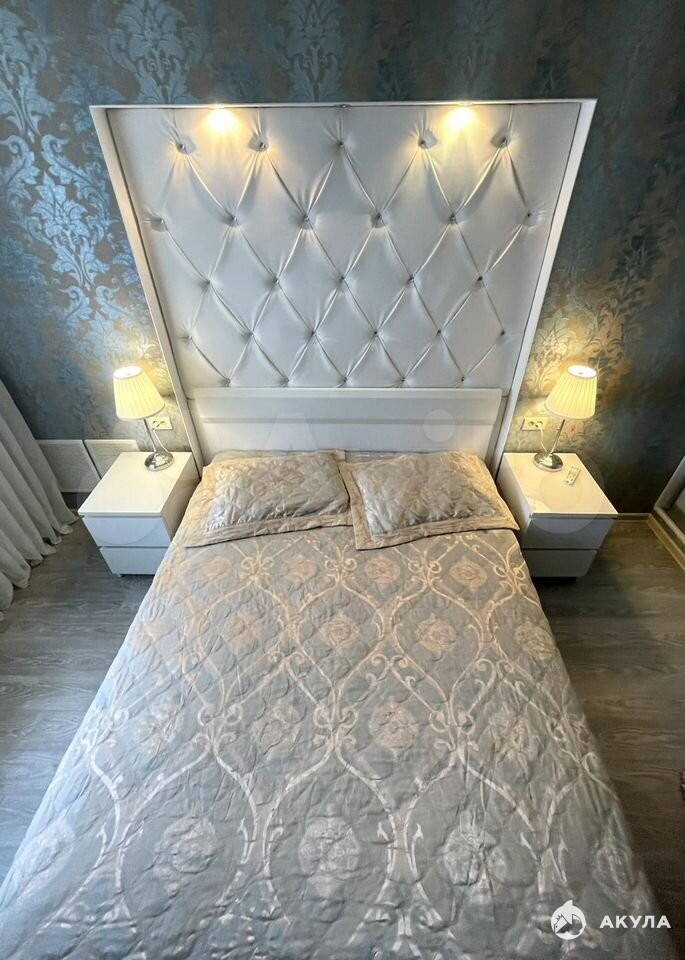 Уютная детская комната (8 кв, стены утеплены). Просторная спальная комната со встроенным гардеробом и декоративным изголовьем в технике каретной стяжки.