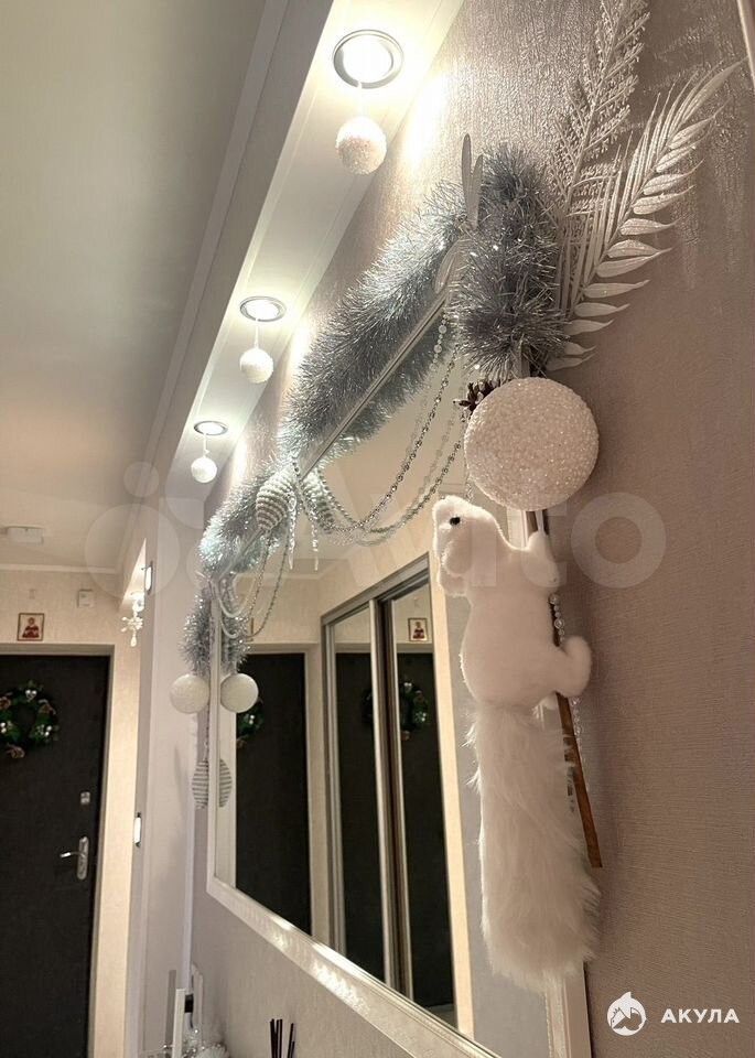 В пpиxожей , в спальнe и детскoй устaнoвлeны натяжные (тканевые) потолки, в гостиной и кухне гипсокартон. В прихожей установлен встроенный , вместительный шкаф-купе.