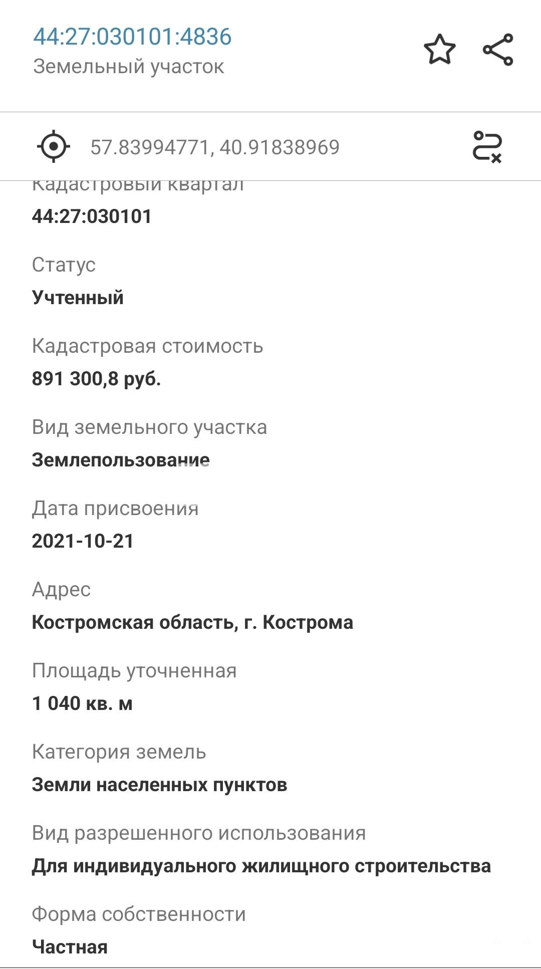 Кадастровый номер 44:27:030101:4836.