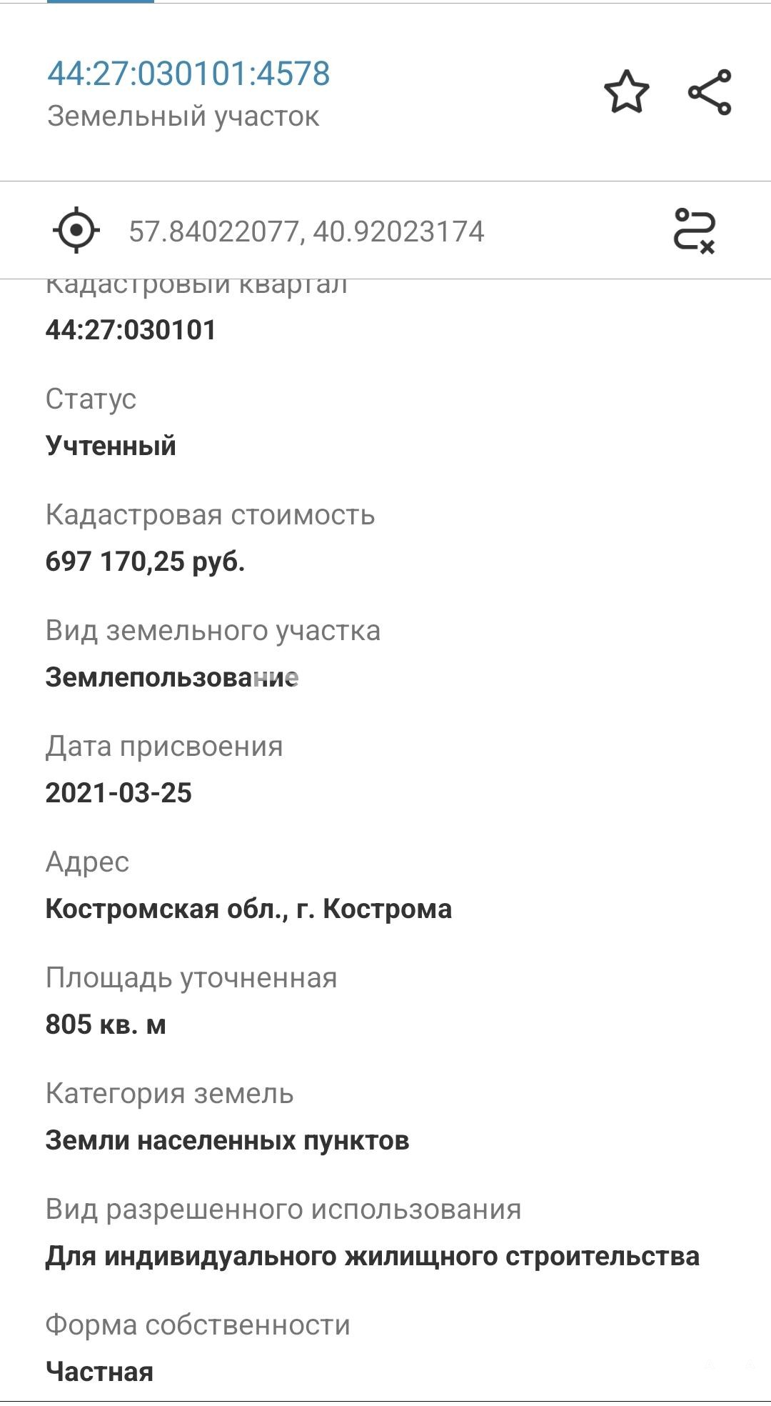 Кадастровый номер 44:27:030101:4578.