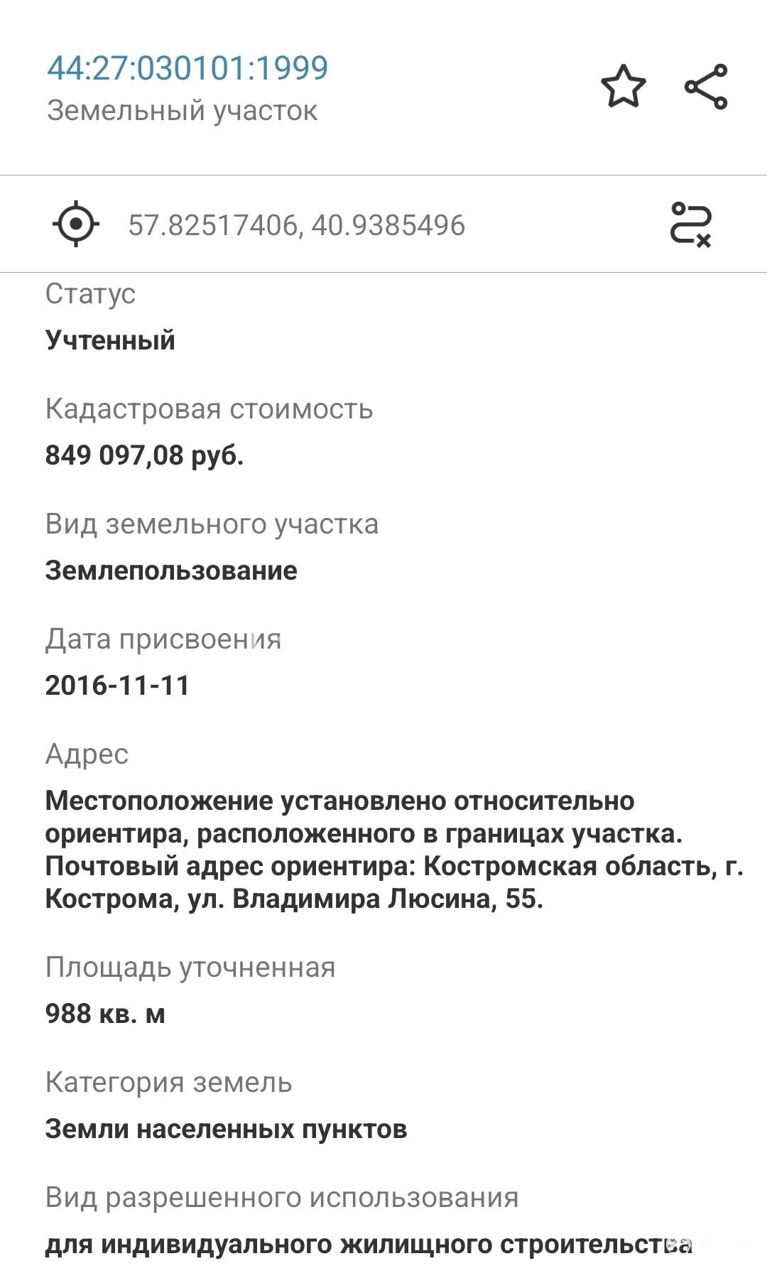 Кадастровый номер 44:27:030101:1999.