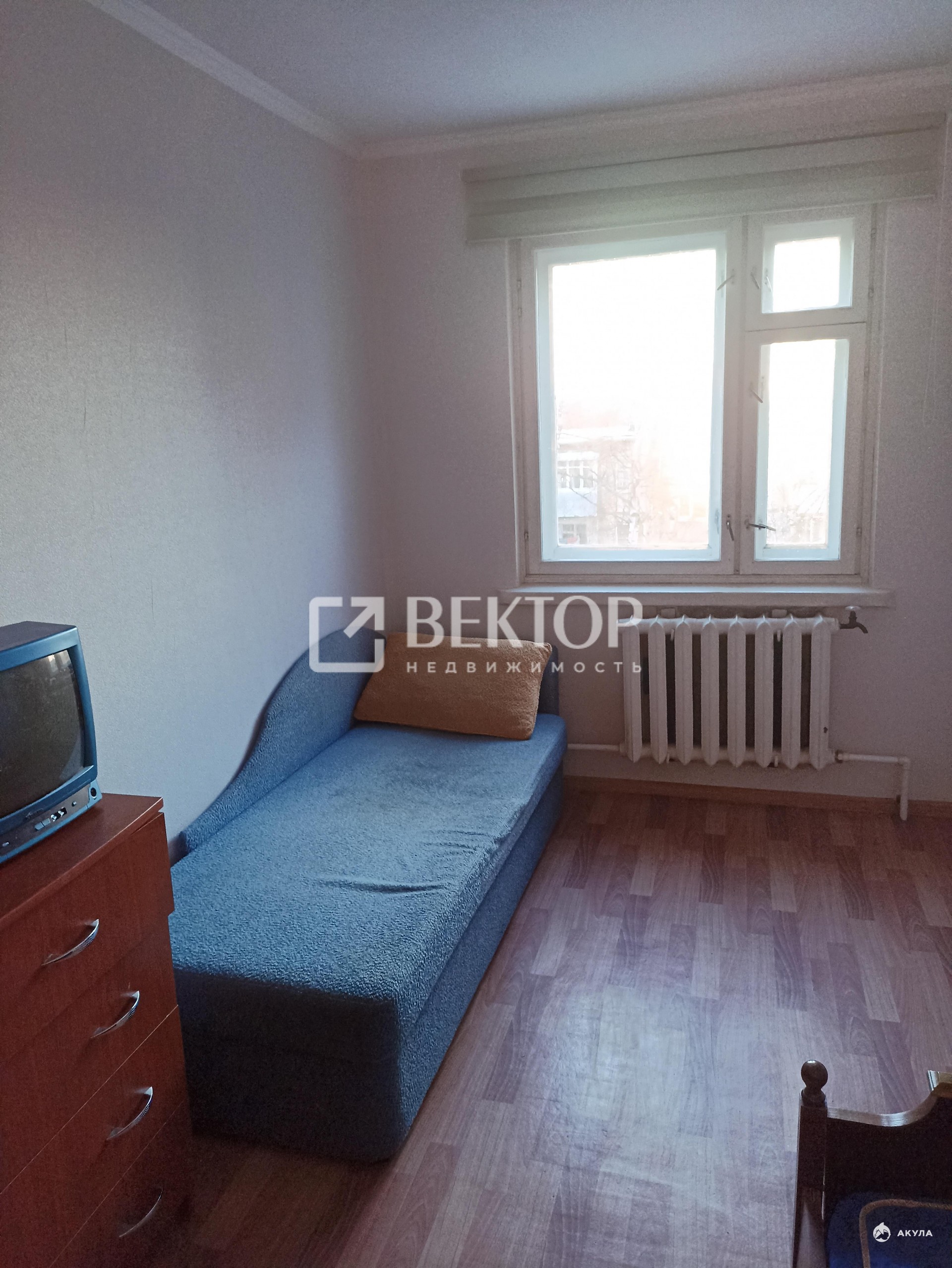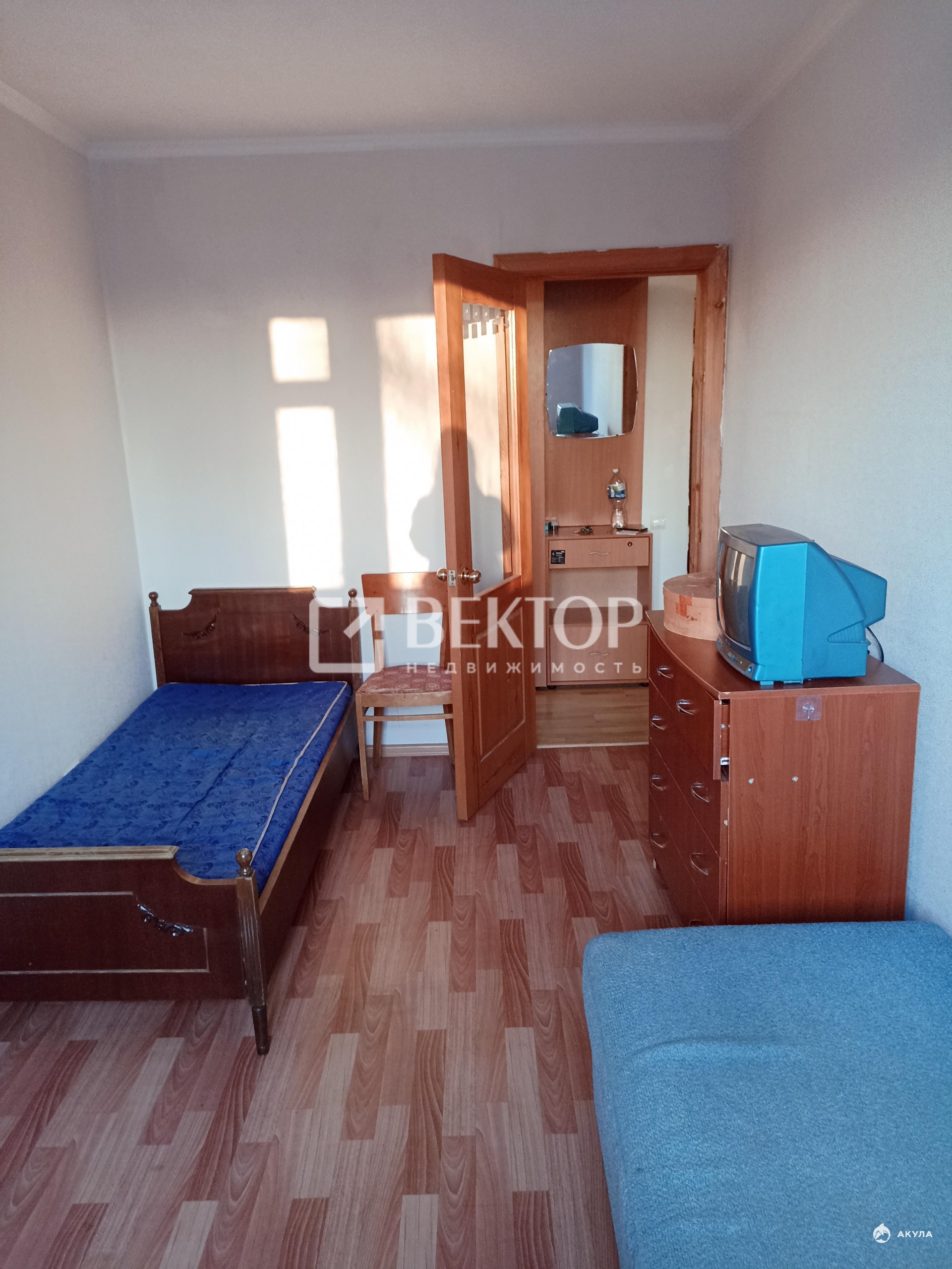 В квартире есть два дивана, три односпальные кровати, телевизор, шкаф, комод, холодильник, стиральная машина, микроволновка.