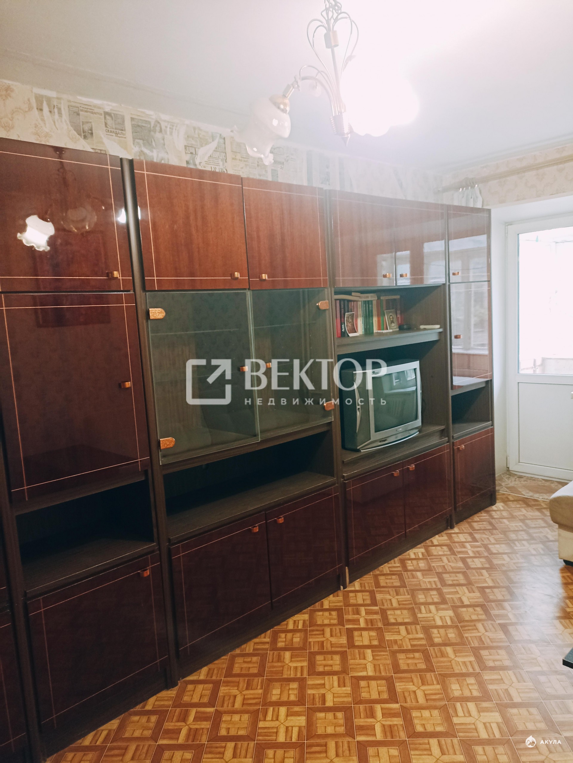 В квартире имеется угловой диван, большая вместительная стенка, шкаф, две односпальные кровати, телевизор, холодильник, стиральная машина.