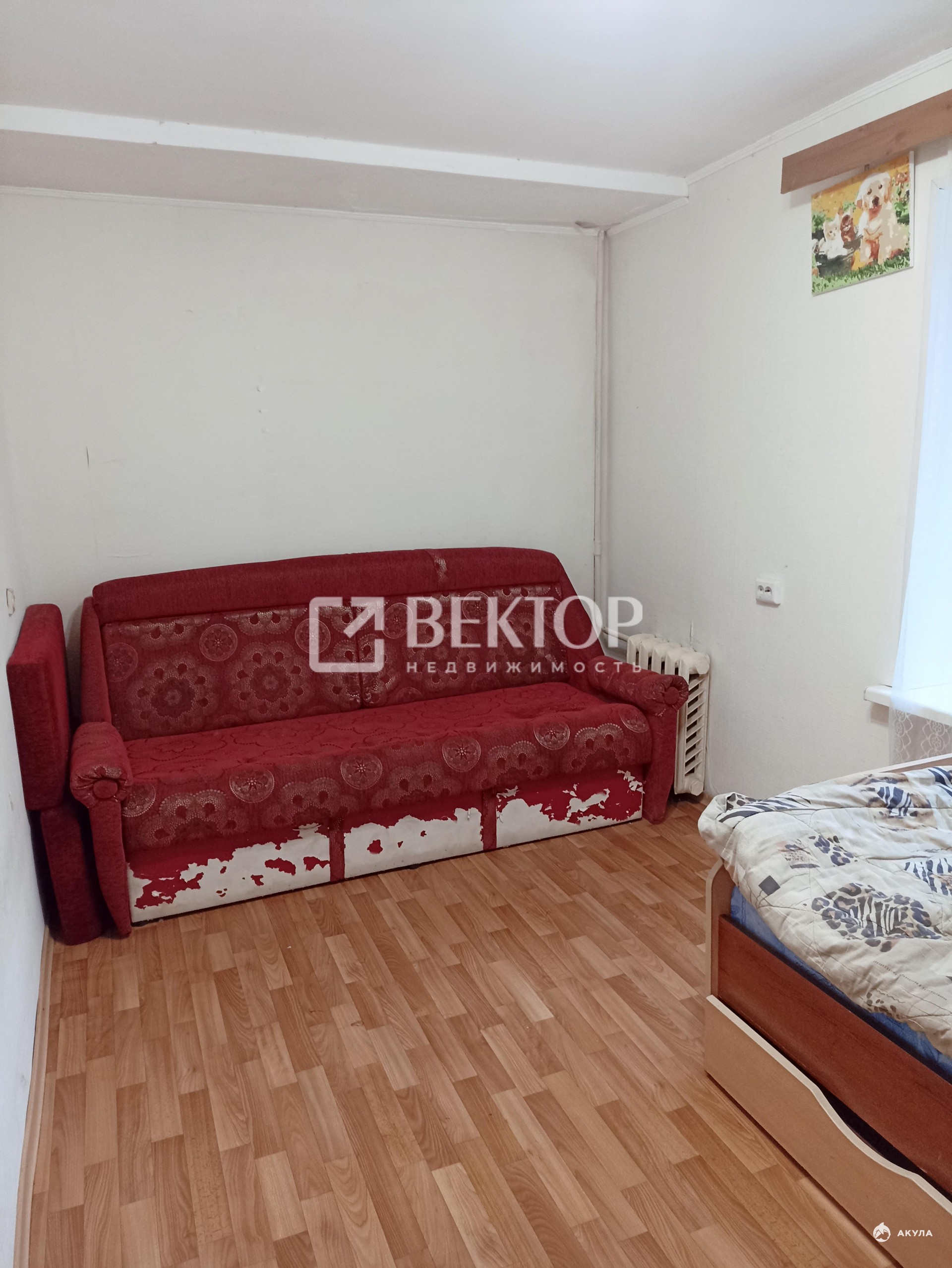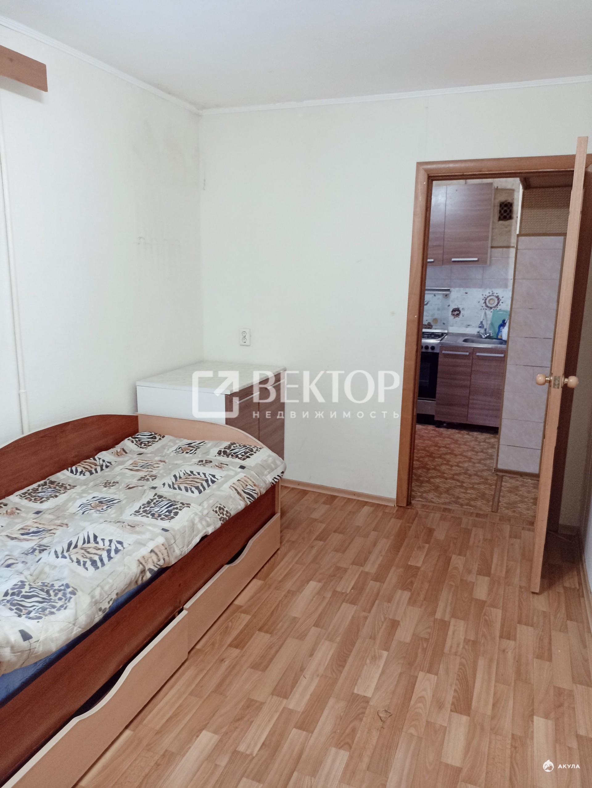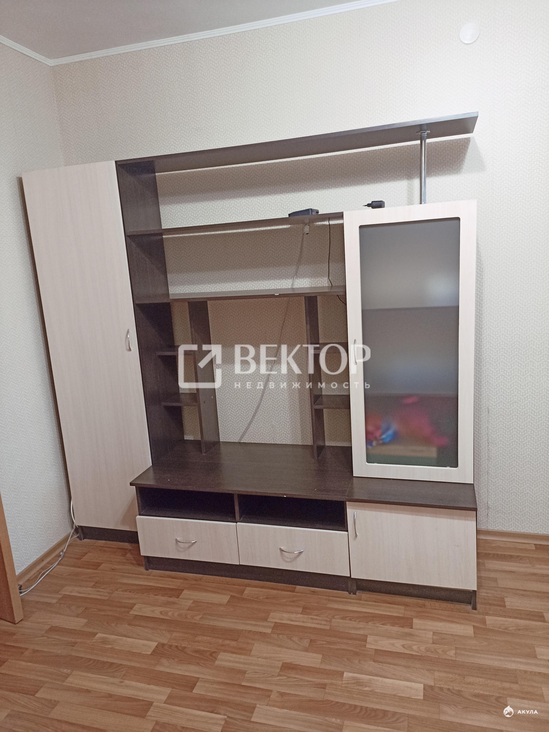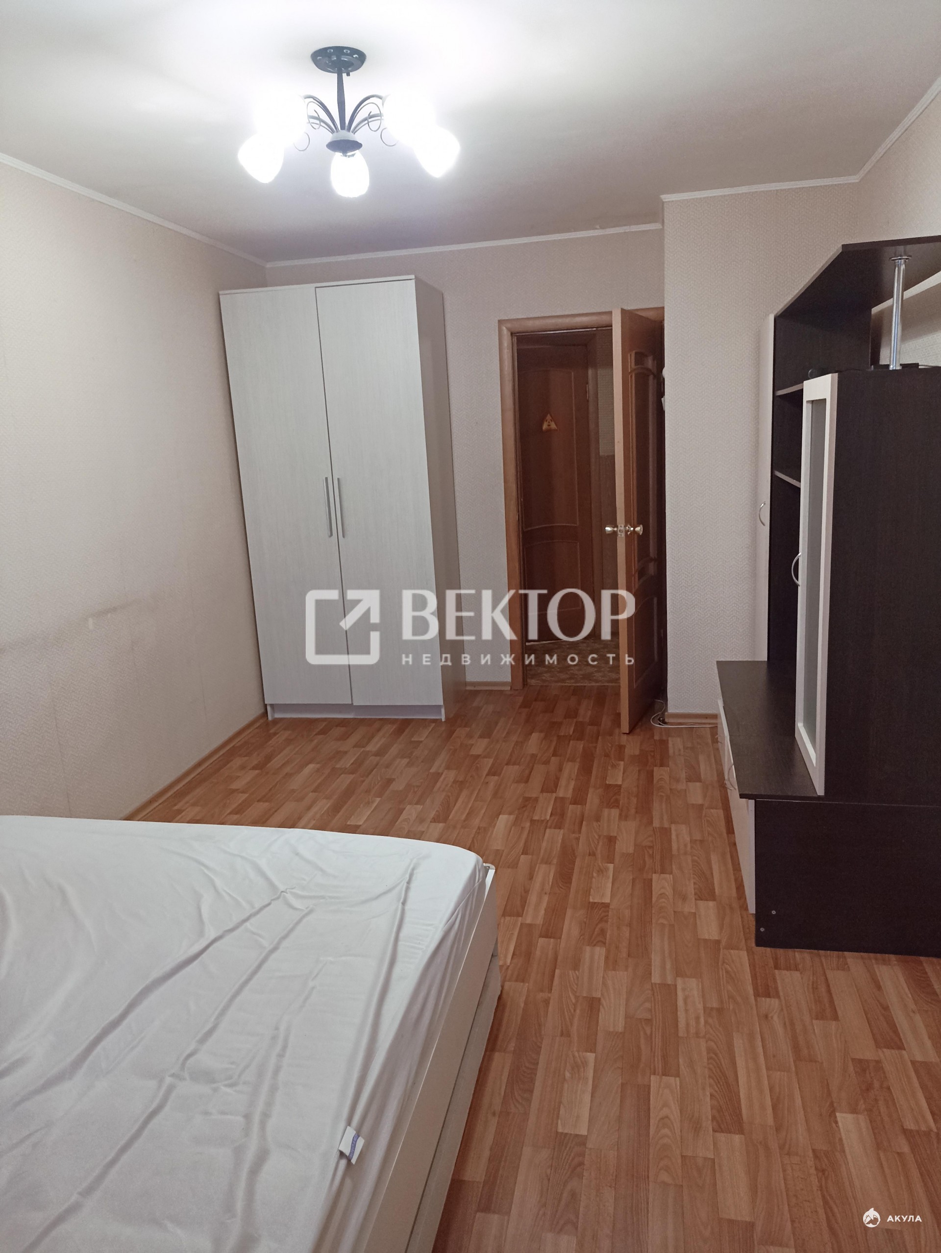 В квартире имеется двуспальная кровать, диван, односпальная кровать, стенка, шкаф, телевизор, стиральная машина.