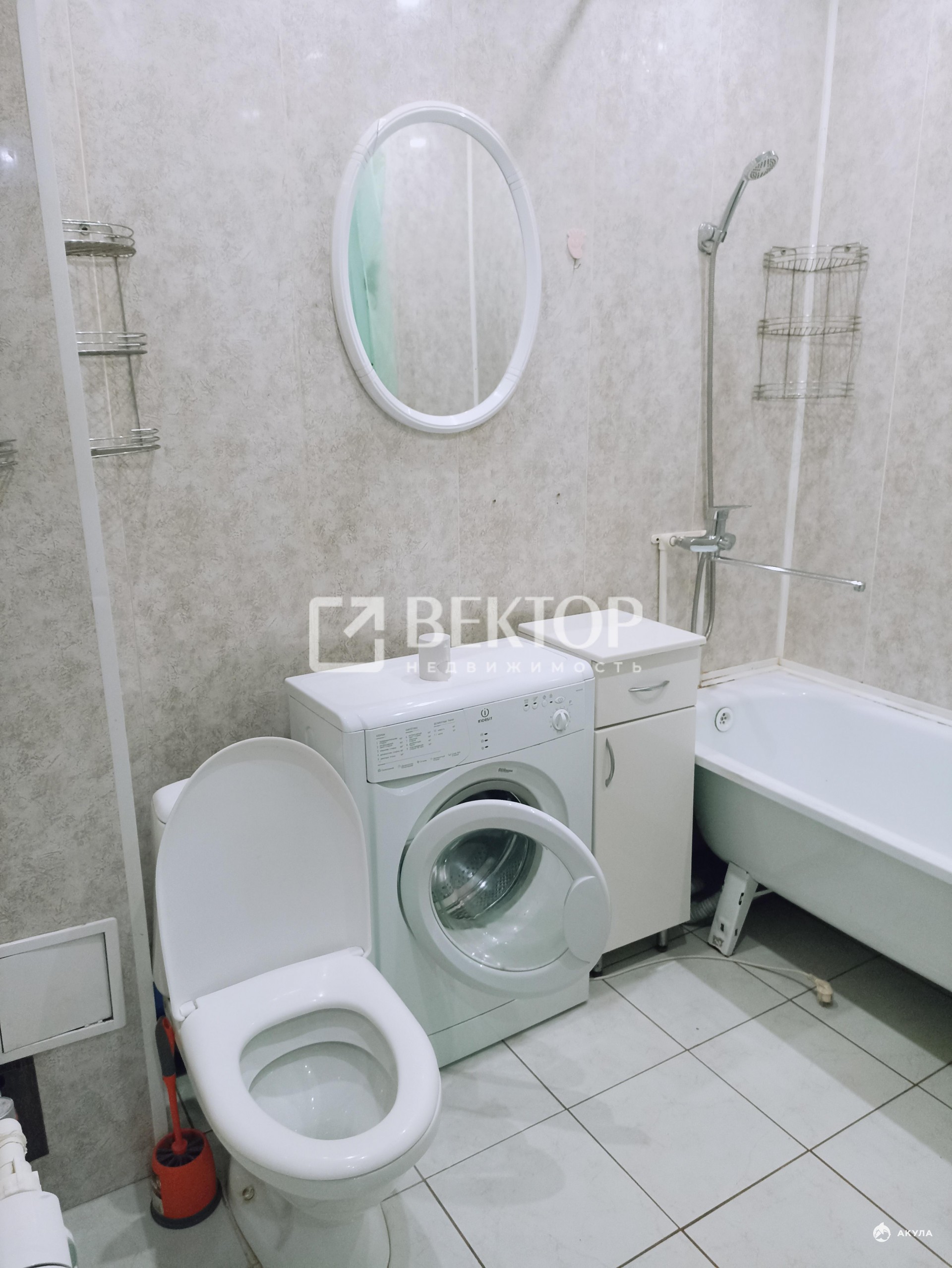 Имеется большой диван, шкаф, стиральная машина, холодильник.
