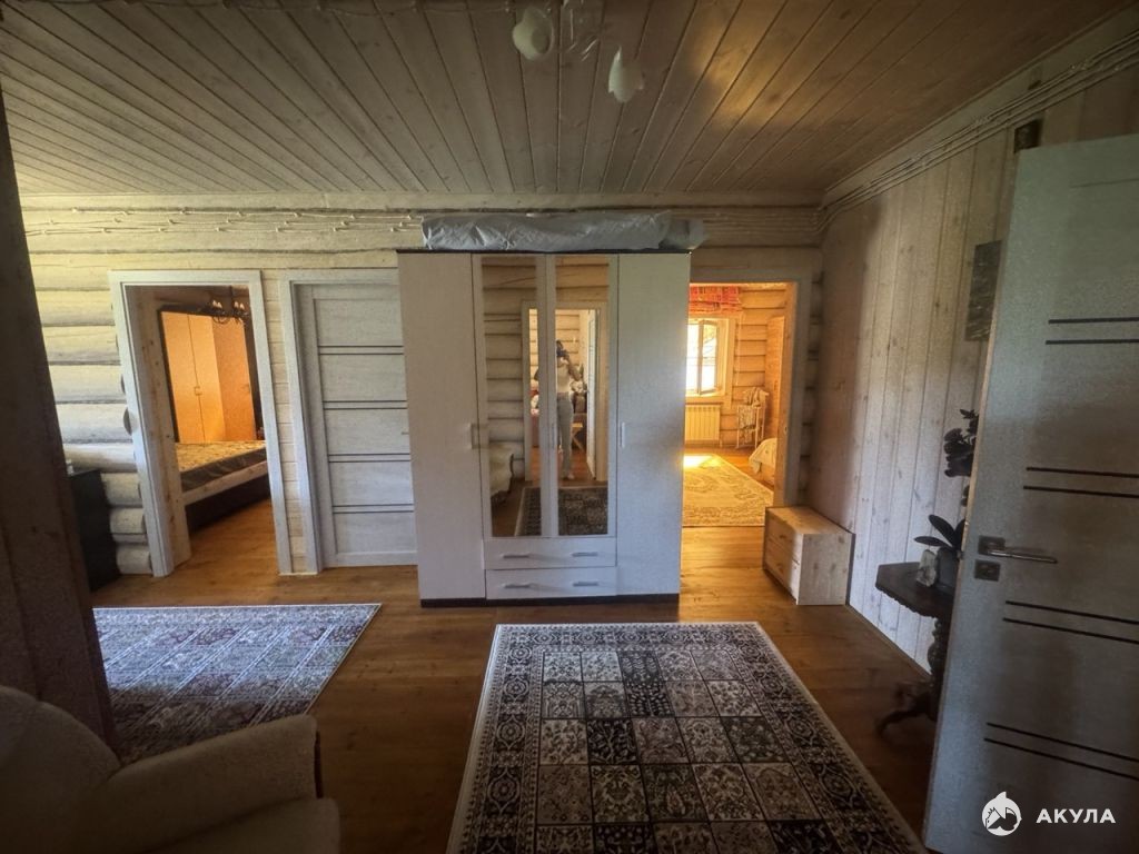 - Дом площадью 145, 6 м построен из бревна, рубленого в чашку; - Фундамент ленточный, утепленный по всему периметру; - Материал крыши- мягкая черепица. - Снаружи дом обработан качественной пропиткой, с долгим сроком службы; - Межвенцовый утеплитель-джут, нет никаких теплопотерь; - Установлена система водостоков; - Прямо к дому примыкает навес с откатными воротами; - Выходов из дома два, один выход к калитке, второй выход на большую уютную террасу; - Отопление автономное газовое ( установлен двухконтурный котел); - Водоснабжение автономное (скважина); - Канализация автономная; - В доме три спальные комнаты, два санузла, большая кухня-гостиная, котельная, гардеробная комната;
